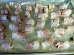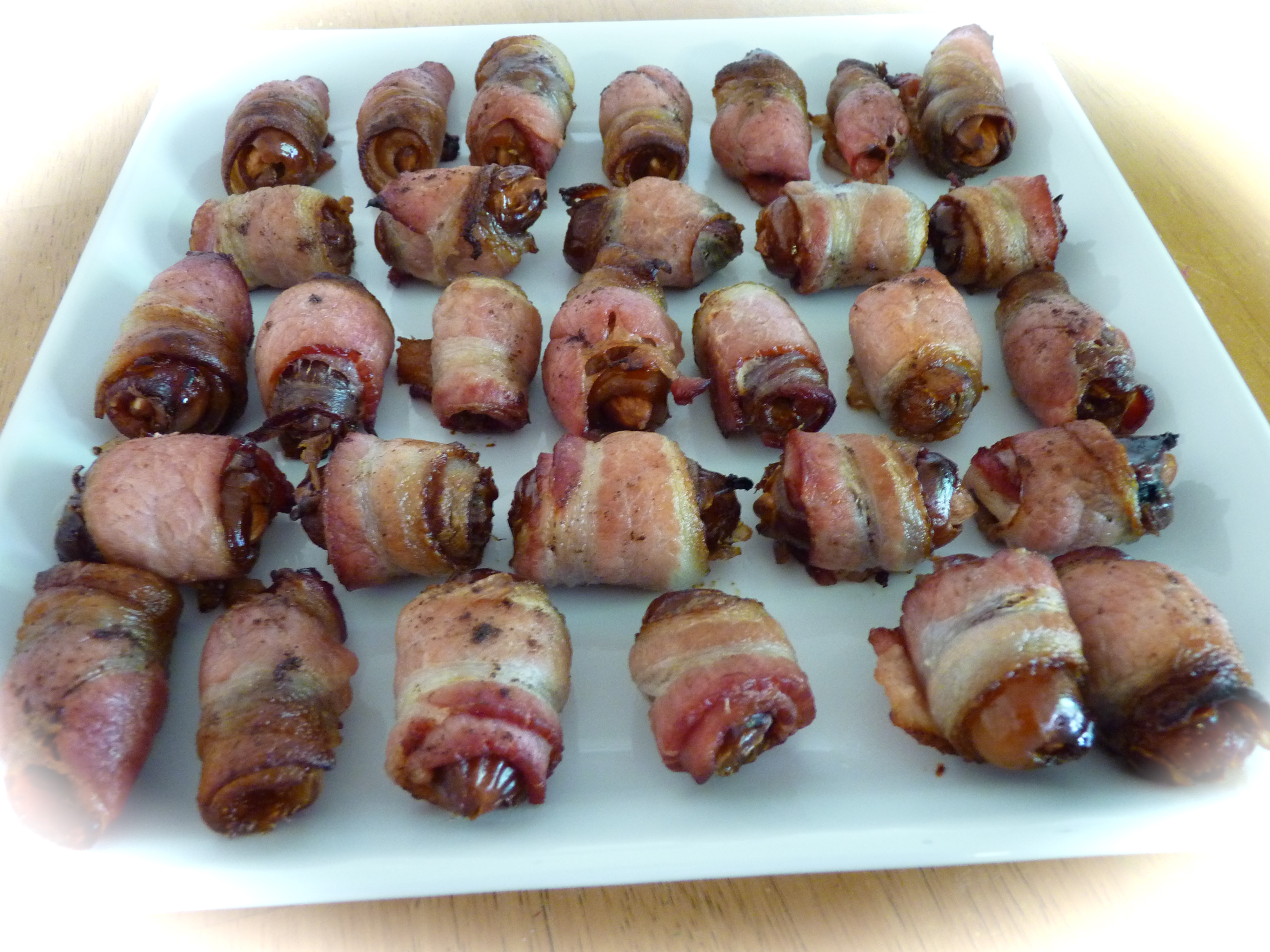 Preheat oven to 400. Insert nuts into center of dates. You should be able to shove 1 or 2 through pretty easily. You can also easily leave the nuts out of the recipe (my husband actually prefers them sans nuts!). Cut bacon strips in half. Wrap each half bacon slice around date and place on parchment or foil lined baking sheet. Sprinkle with a bit of allspice (optional). Bake in oven for about 10-15 minutes until bacon is done and crispy to your liking. I’ve found if I put the pan in the center rack of the oven, I do not need to flip them over to bake through. Serve alone or with fancy toothpicks for extra flair!